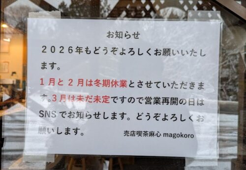 2024年、麻心magokoroは、3月2日(土)から営業を始めますので、よろしくお願いします。