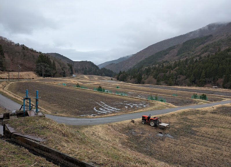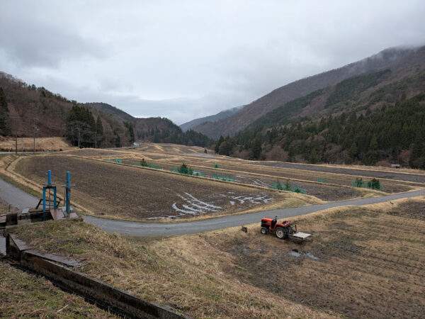 棚田の雪も解けて、いよいよ春になり土が見えてきました。