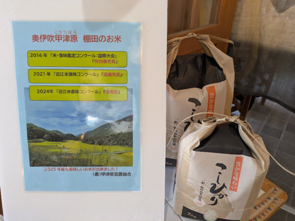 「在来種伊吹そば」は引き続き休ませていただいていますが、甲津原味噌や梅干、切り絵の雑貨などの販売をしています。
