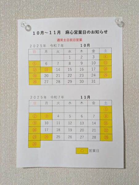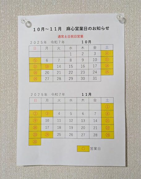 売店喫茶麻心magokoroは、10月11月はカレンダー通り土日祝日営業の予定です。