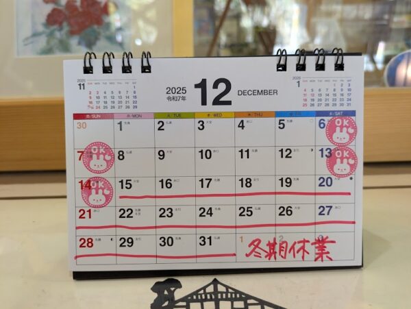 12月は14日(日)まで営業し、年末休みに入らせていただきます。