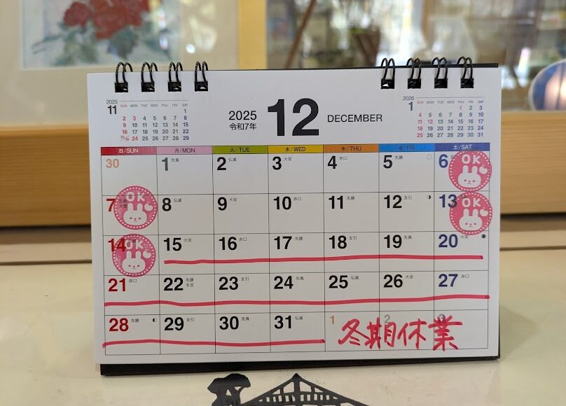 12月は14日(日)まで営業し、年末休みに入らせていただきます。